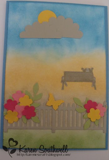 Gorgeous card, Karen. I love the flowers and butterflies along the picket fence. Thanks for playing along with our inspiration challenge this week.